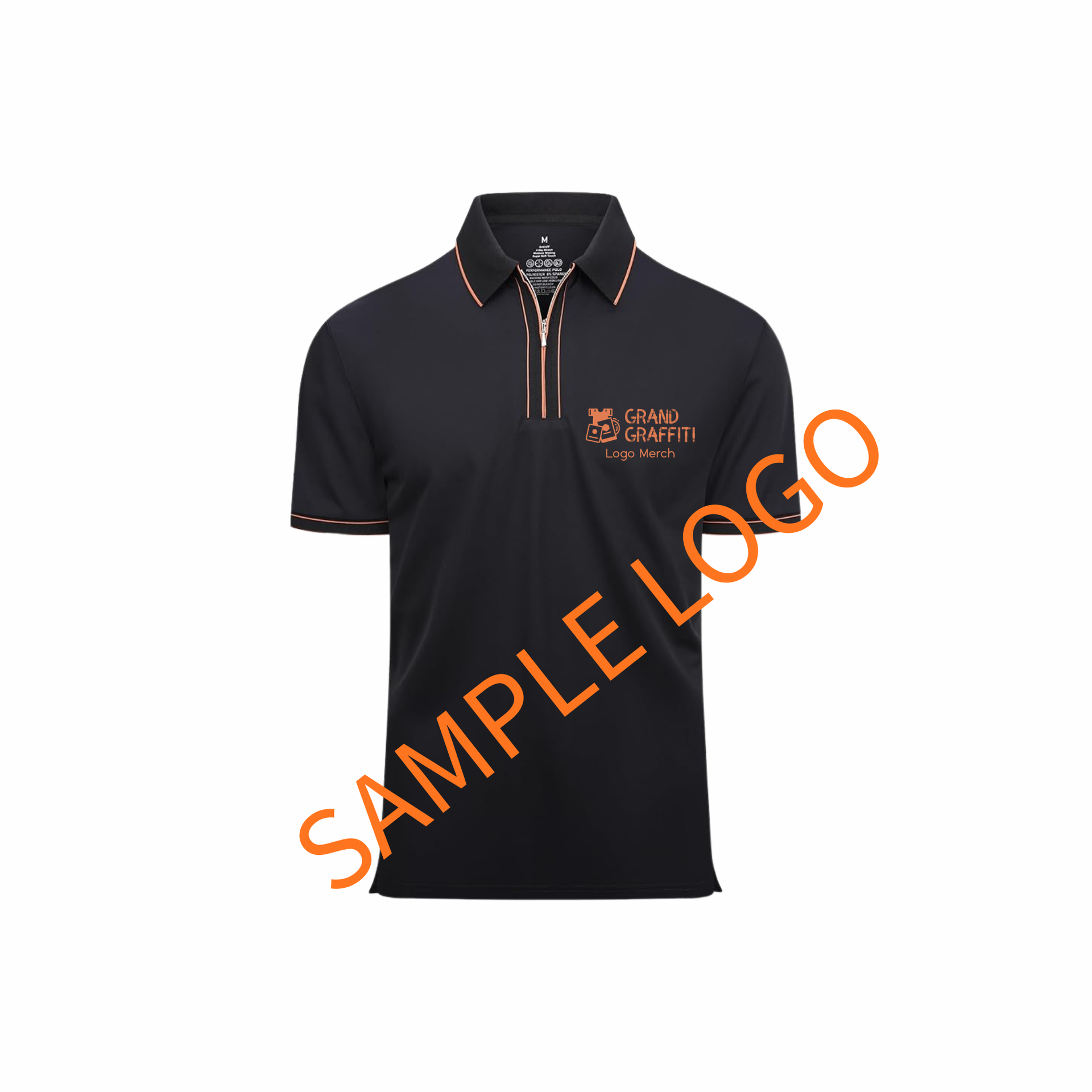 Men's Zipper Golf Shirt Moisture Wicking Zip Up Solid Fashion Polo Shirts with printed logo